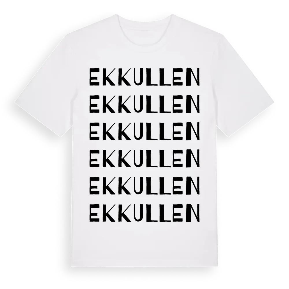 Ekkullen ordlek t-shirt är inspirerad av Ekkullen i Kalmar län, Sverige. Tröjan är designad för dig som har en speciell koppling till platsen – oavsett om du bor här, har rötterna här eller bara älskar Ekkullen.