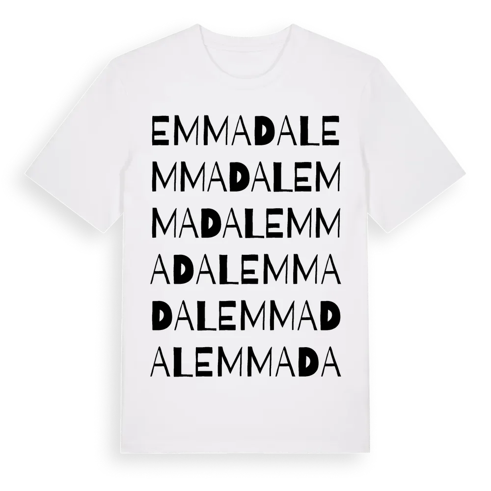 Emmadal ordlek t-shirt är inspirerad av Emmadal i Kalmar län, Sverige. Tröjan är designad för dig som har en speciell koppling till platsen – oavsett om du bor här, har rötterna här eller bara älskar Emmadal.
