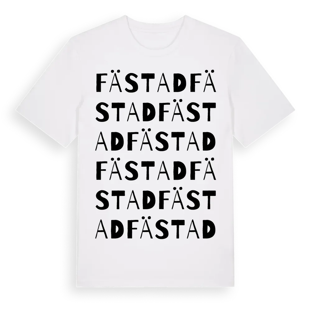 Fästad ordlek t-shirt är inspirerad av byn Fästad i Kalmar län, Sverige. Tröjan är designad för dig som har en speciell koppling till platsen – oavsett om du bor här, har rötterna här eller bara älskar Fästad.