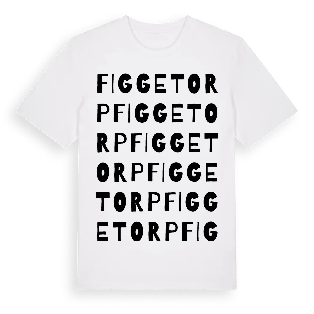 Figgetorp ordlek t-shirt är inspirerad av Figgetorp i Kalmar län, Sverige. Tröjan är designad för dig som har en speciell koppling till platsen – oavsett om du bor här, har rötterna här eller bara älskar Figgetorp.