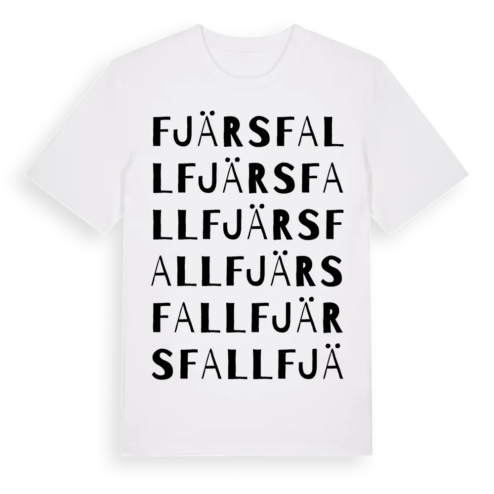 Fjärsfall ordlek t-shirt är inspirerad av byn Fjärsfall i Kalmar län, Sverige. Tröjan är designad för dig som har en speciell koppling till platsen – oavsett om du bor här, har rötterna här eller bara älskar Fjärsfall.