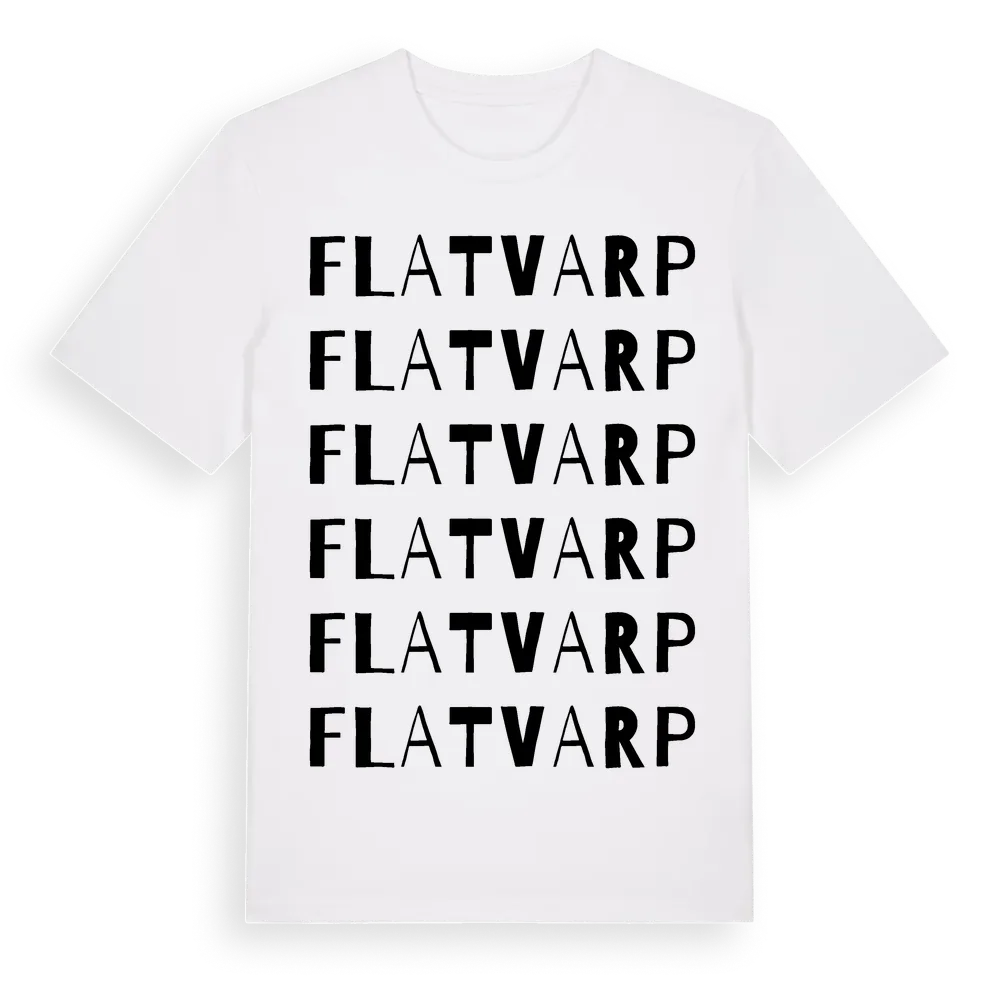 Flatvarp ordlek t-shirt är inspirerad av byn Flatvarp i Kalmar län, Sverige. Tröjan är designad för dig som har en speciell koppling till platsen – oavsett om du bor här, har rötterna här eller bara älskar Flatvarp.