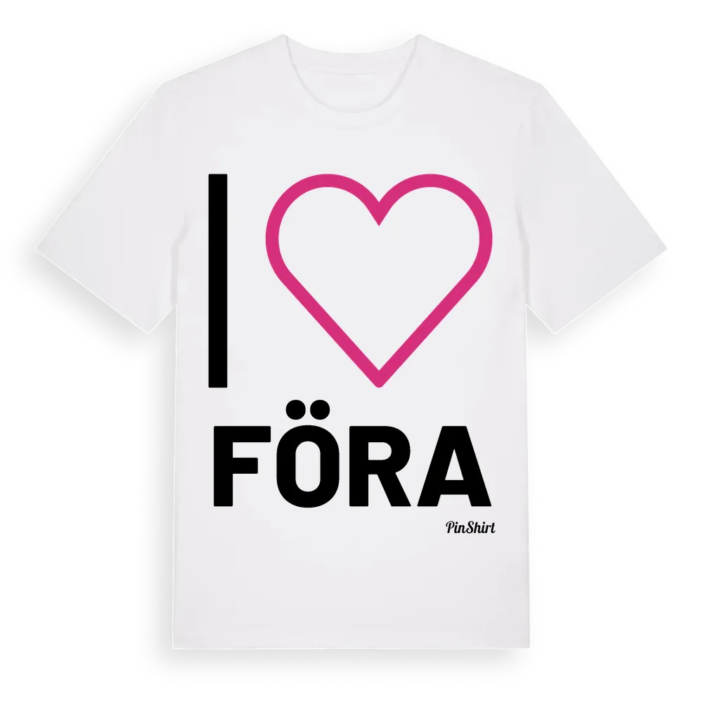 Det klassiska "I ❤ Föra"-motivet i stort format som täcker hela bröstet. För dig som vill visa kärleken till Föra på riktigt. Premium bomull, unisex – från byn Föra i Kalmar län.