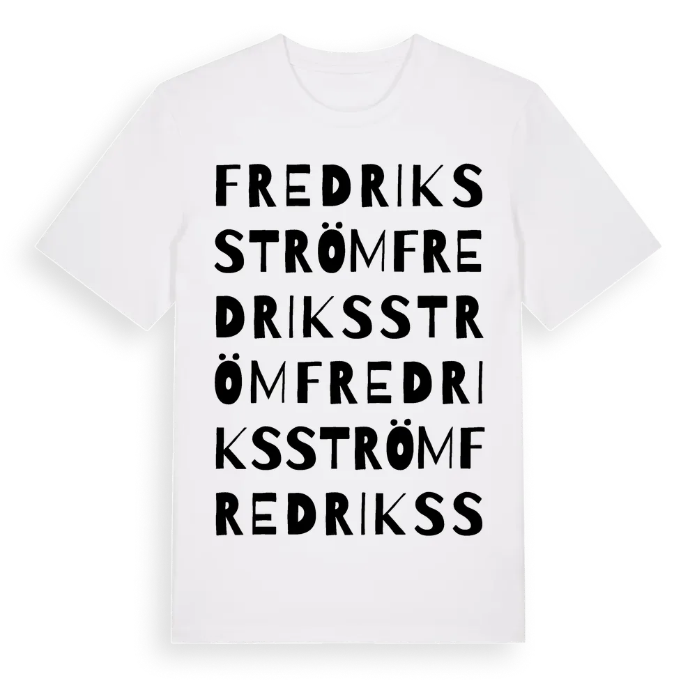 Fredriksström ordlek t-shirt är inspirerad av byn Fredriksström i Kalmar län, Sverige. Tröjan är designad för dig som har en speciell koppling till platsen – oavsett om du bor här, har rötterna här eller bara älskar Fredriksström.