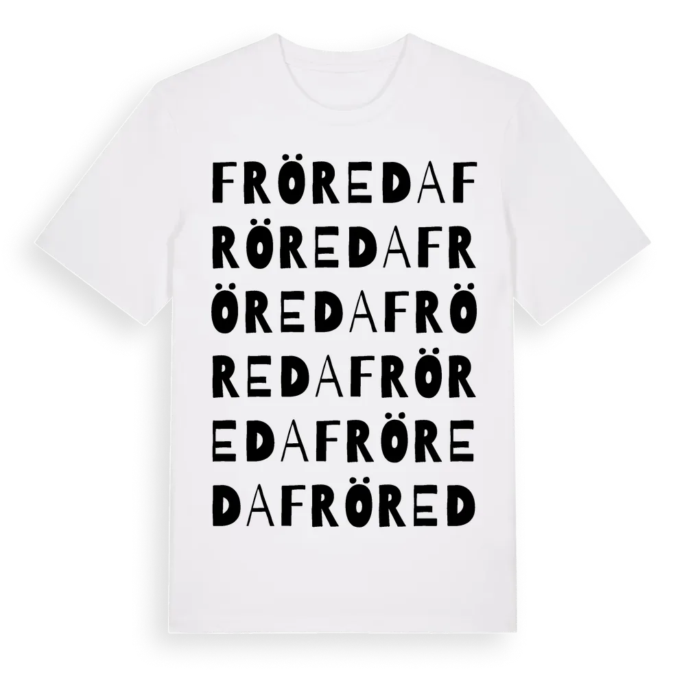 Fröreda ordlek t-shirt är inspirerad av byn Fröreda i Kalmar län, Sverige. Tröjan är designad för dig som har en speciell koppling till platsen – oavsett om du bor här, har rötterna här eller bara älskar Fröreda.