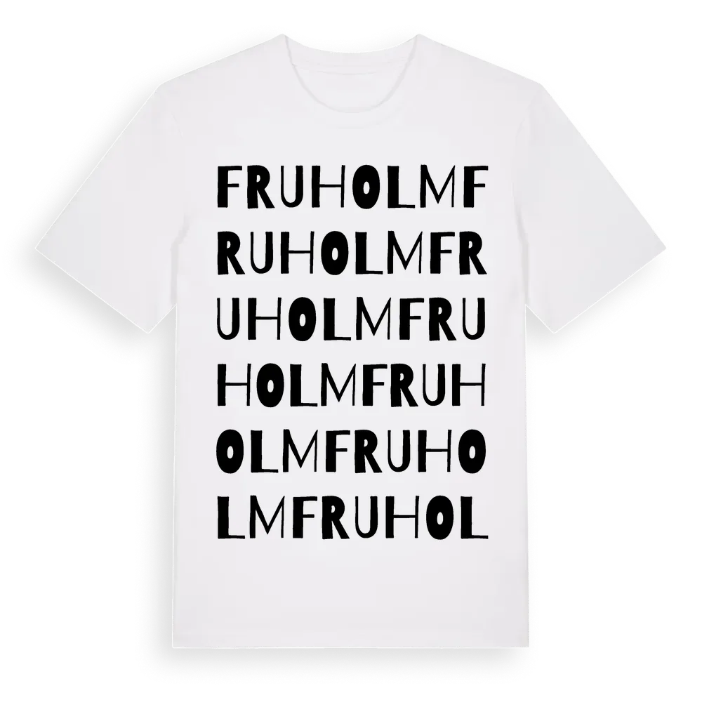 Fruholm ordlek t-shirt är inspirerad av Fruholm i Kalmar län, Sverige. Tröjan är designad för dig som har en speciell koppling till platsen – oavsett om du bor här, har rötterna här eller bara älskar Fruholm.