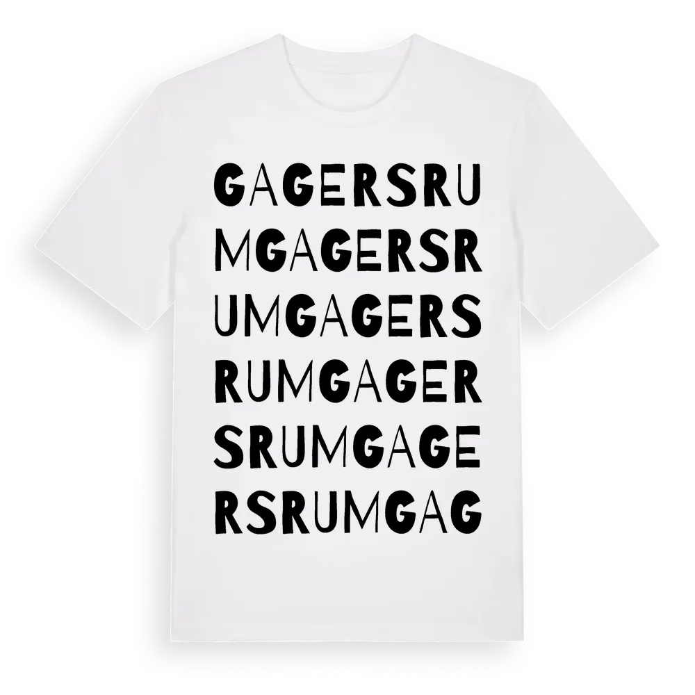 Gagersrum ordlek t-shirt är inspirerad av byn Gagersrum i Kalmar län, Sverige. Tröjan är designad för dig som har en speciell koppling till platsen – oavsett om du bor här, har rötterna här eller bara älskar Gagersrum.