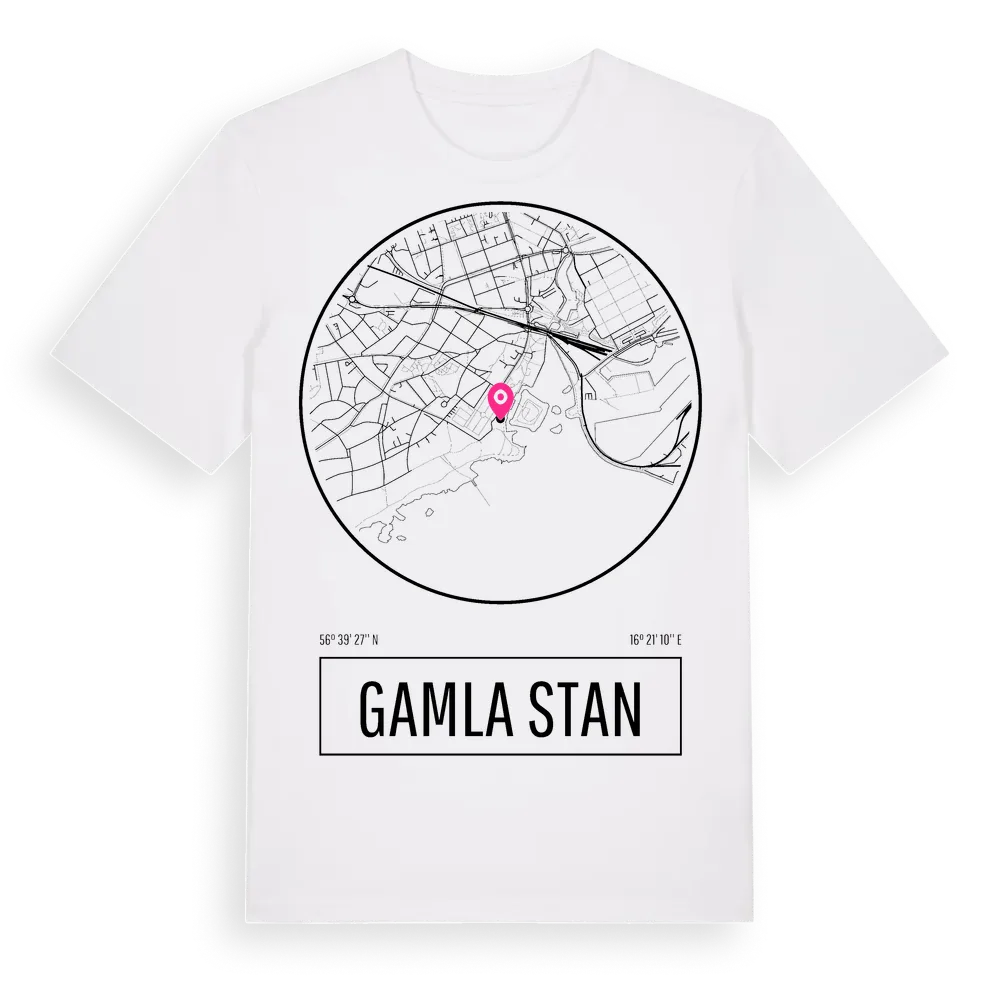Gamla Stan t-shirt är inspirerad av Gamla Stan i Kalmar län, Sverige. Tröjan är designad för dig som har en speciell koppling till platsen – oavsett om du bor här, har rötterna här eller bara älskar Gamla Stan.