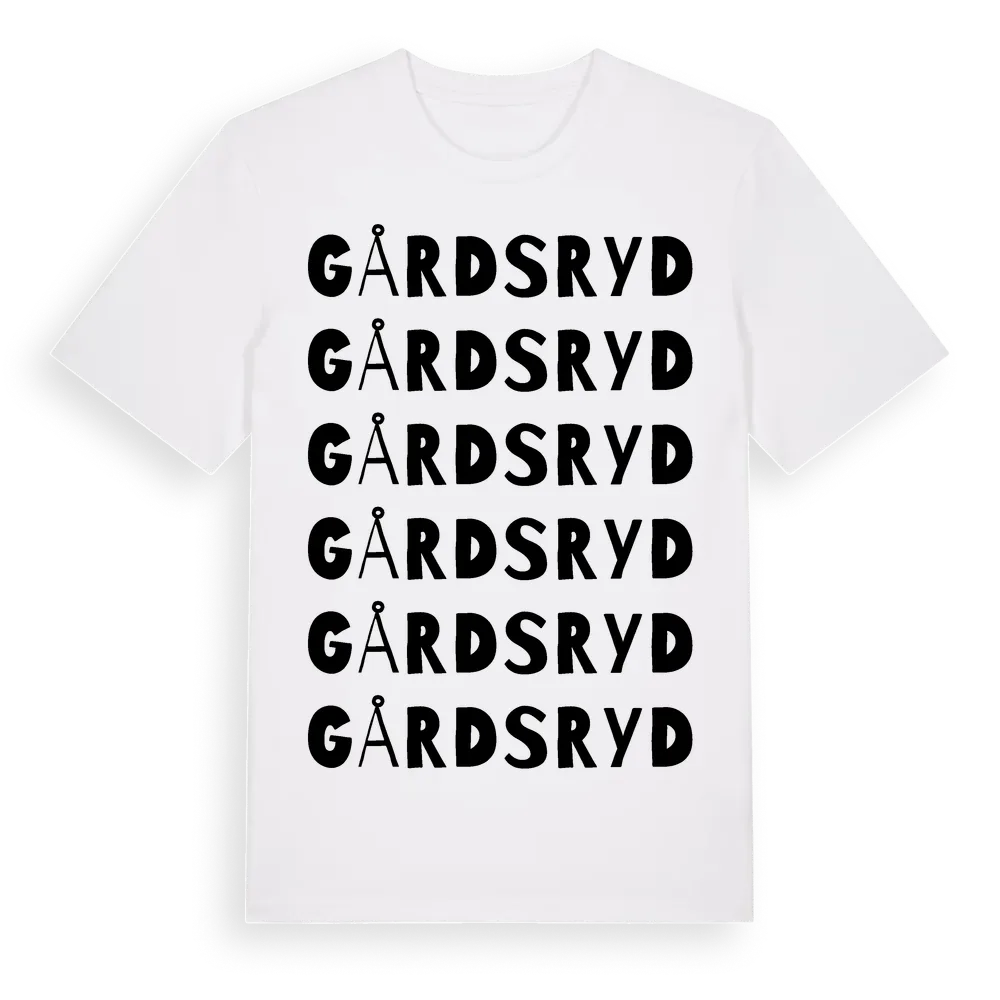 Gårdsryd ordlek t-shirt är inspirerad av Gårdsryd i Kalmar län, Sverige. Tröjan är designad för dig som har en speciell koppling till platsen – oavsett om du bor här, har rötterna här eller bara älskar Gårdsryd.