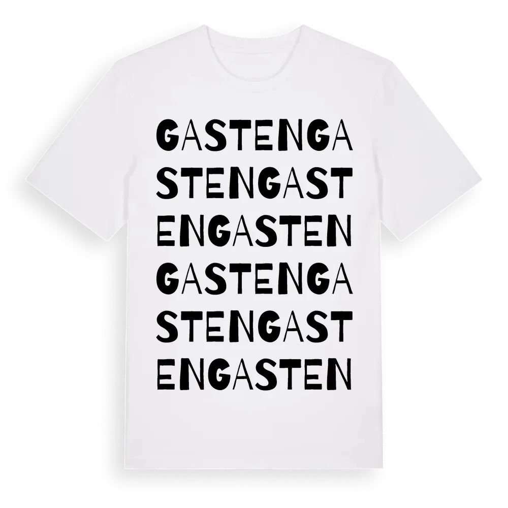 Gasten ordlek t-shirt är inspirerad av stadsdelen Gasten i Kalmar län, Sverige. Tröjan är designad för dig som har en speciell koppling till platsen – oavsett om du bor här, har rötterna här eller bara älskar Gasten.