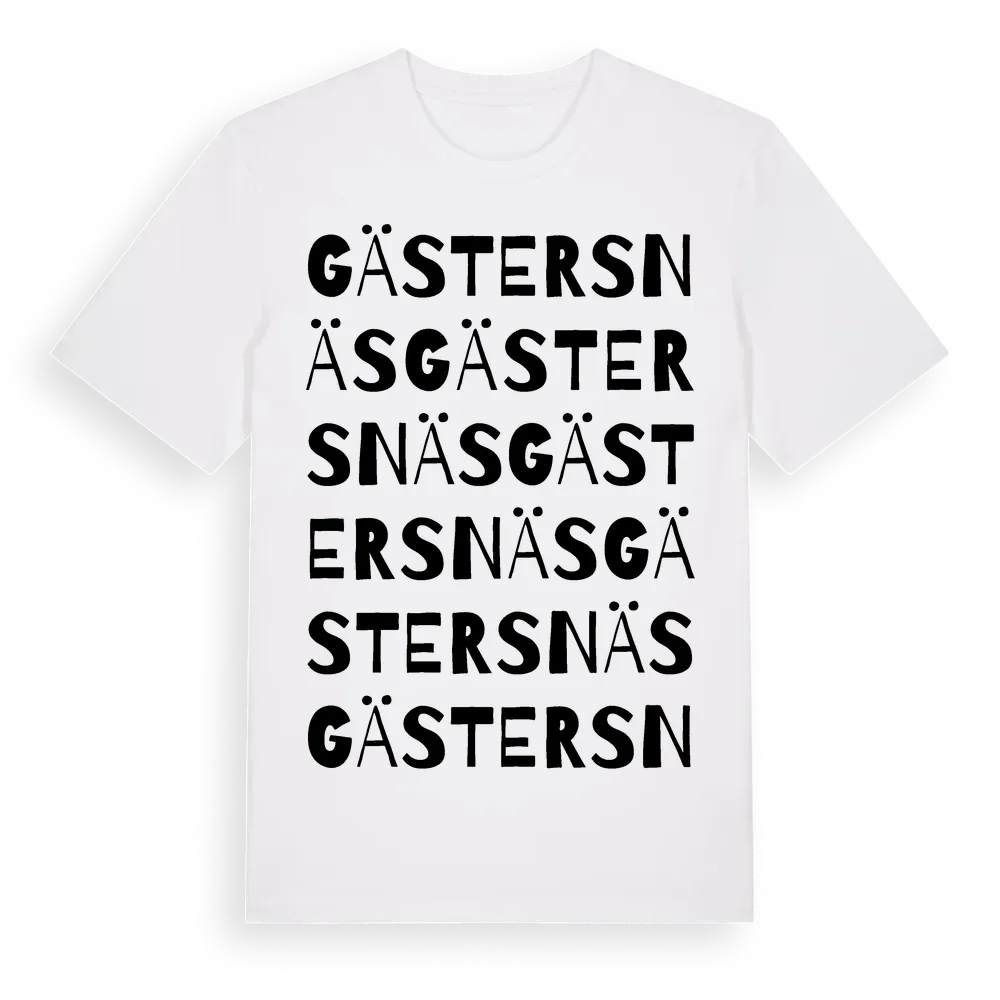 Gästersnäs ordlek t-shirt är inspirerad av Gästersnäs i Kalmar län, Sverige. Tröjan är designad för dig som har en speciell koppling till platsen – oavsett om du bor här, har rötterna här eller bara älskar Gästersnäs.