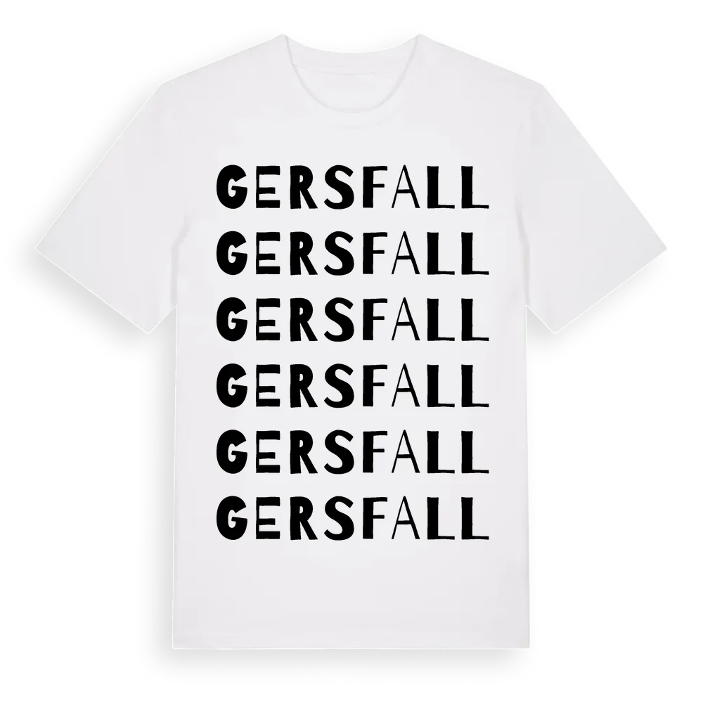 Gersfall ordlek t-shirt är inspirerad av Gersfall i Kalmar län, Sverige. Tröjan är designad för dig som har en speciell koppling till platsen – oavsett om du bor här, har rötterna här eller bara älskar Gersfall.