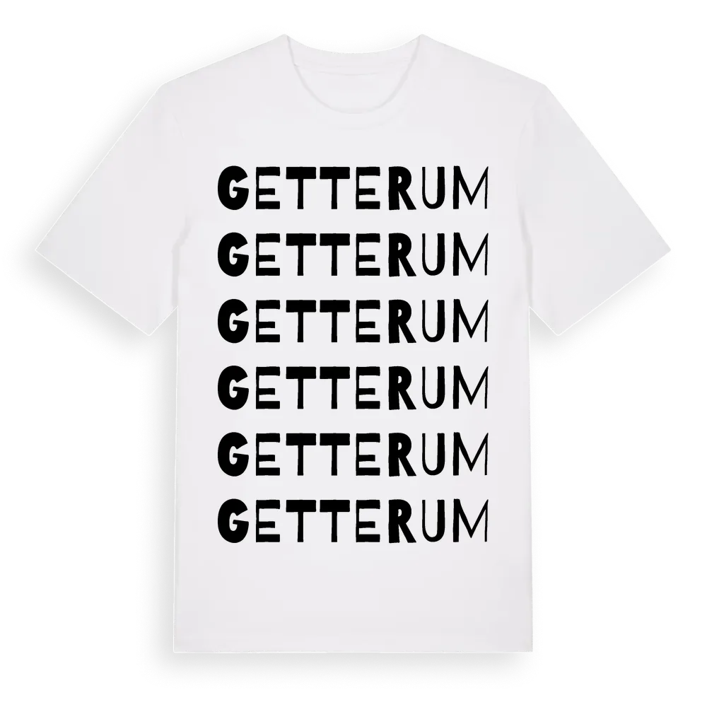 Getterum ordlek t-shirt är inspirerad av Getterum i Kalmar län, Sverige. Tröjan är designad för dig som har en speciell koppling till platsen – oavsett om du bor här, har rötterna här eller bara älskar Getterum.