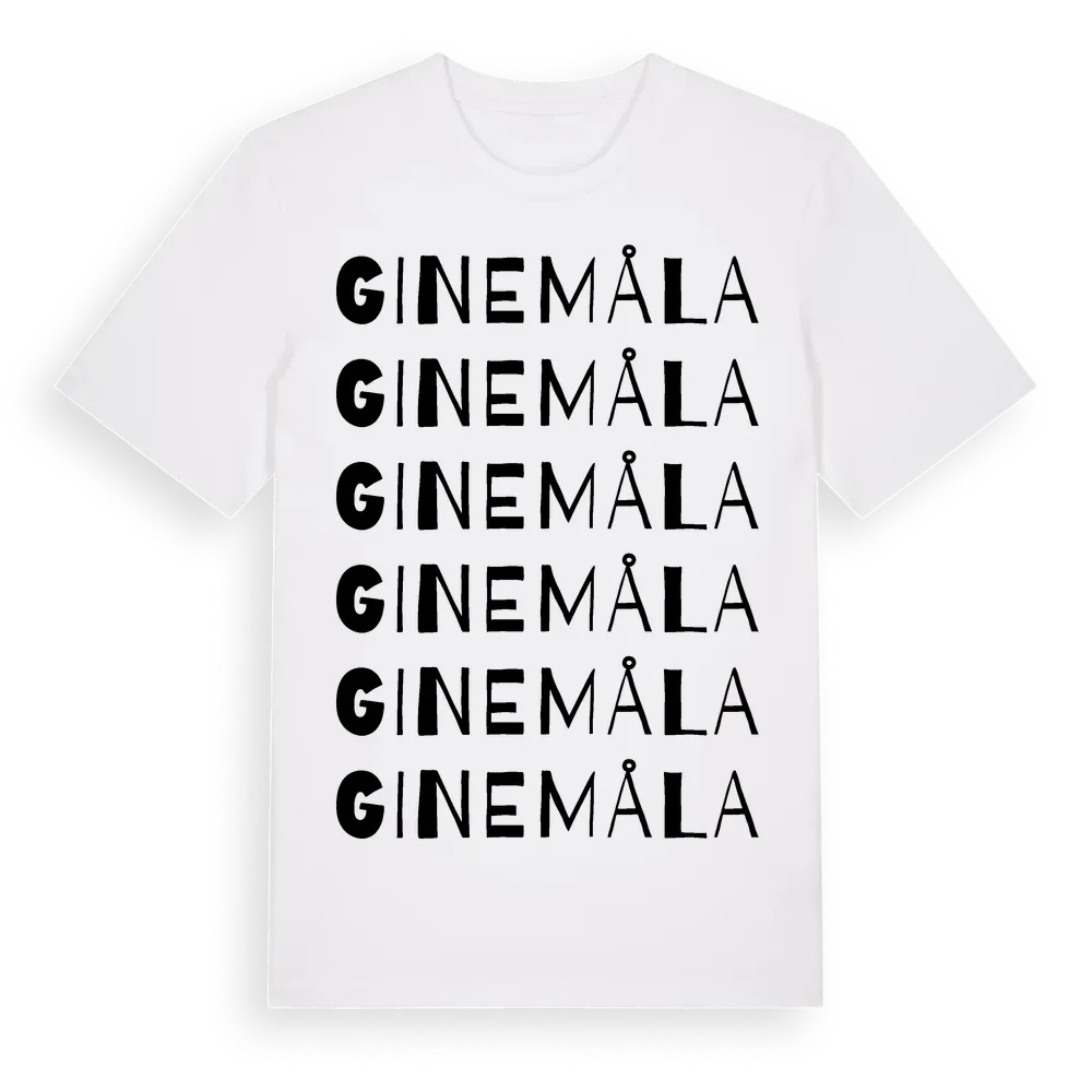 Ginemåla ordlek t-shirt är inspirerad av byn Ginemåla i Kalmar län, Sverige. Tröjan är designad för dig som har en speciell koppling till platsen – oavsett om du bor här, har rötterna här eller bara älskar Ginemåla.
