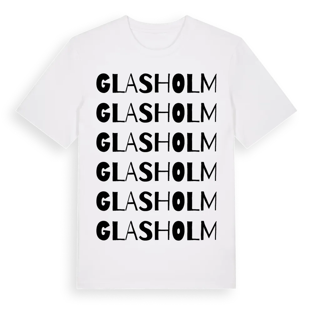Glasholm ordlek t-shirt är inspirerad av byn Glasholm i Kalmar län, Sverige. Tröjan är designad för dig som har en speciell koppling till platsen – oavsett om du bor här, har rötterna här eller bara älskar Glasholm.