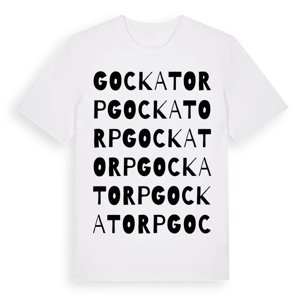 Gockatorp ordlek t-shirt är inspirerad av byn Gockatorp i Kalmar län, Sverige. Tröjan är designad för dig som har en speciell koppling till platsen – oavsett om du bor här, har rötterna här eller bara älskar Gockatorp.