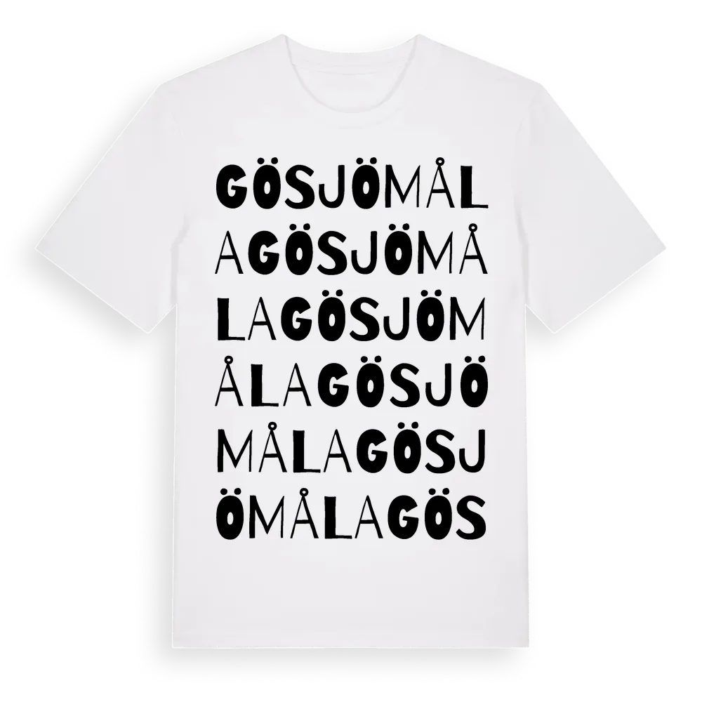 Gösjömåla ordlek t-shirt är inspirerad av Gösjömåla i Kalmar län, Sverige. Tröjan är designad för dig som har en speciell koppling till platsen – oavsett om du bor här, har rötterna här eller bara älskar Gösjömåla.