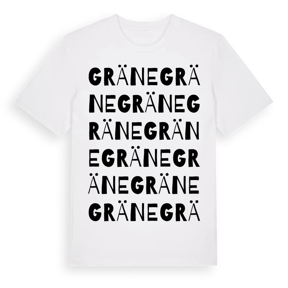 Gräne ordlek t-shirt är inspirerad av byn Gräne i Kalmar län, Sverige. Tröjan är designad för dig som har en speciell koppling till platsen – oavsett om du bor här, har rötterna här eller bara älskar Gräne.