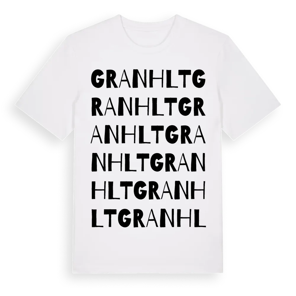 Granhlt ordlek t-shirt är inspirerad av Granhlt i Kalmar län, Sverige. Tröjan är designad för dig som har en speciell koppling till platsen – oavsett om du bor här, har rötterna här eller bara älskar Granhlt.