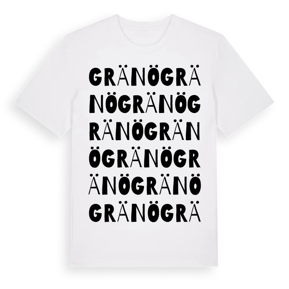 Gränö ordlek t-shirt är inspirerad av byn Gränö i Kalmar län, Sverige. Tröjan är designad för dig som har en speciell koppling till platsen – oavsett om du bor här, har rötterna här eller bara älskar Gränö.