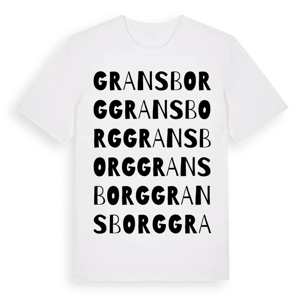 Gransborg ordlek t-shirt är inspirerad av Gransborg i Kalmar län, Sverige. Tröjan är designad för dig som har en speciell koppling till platsen – oavsett om du bor här, har rötterna här eller bara älskar Gransborg.