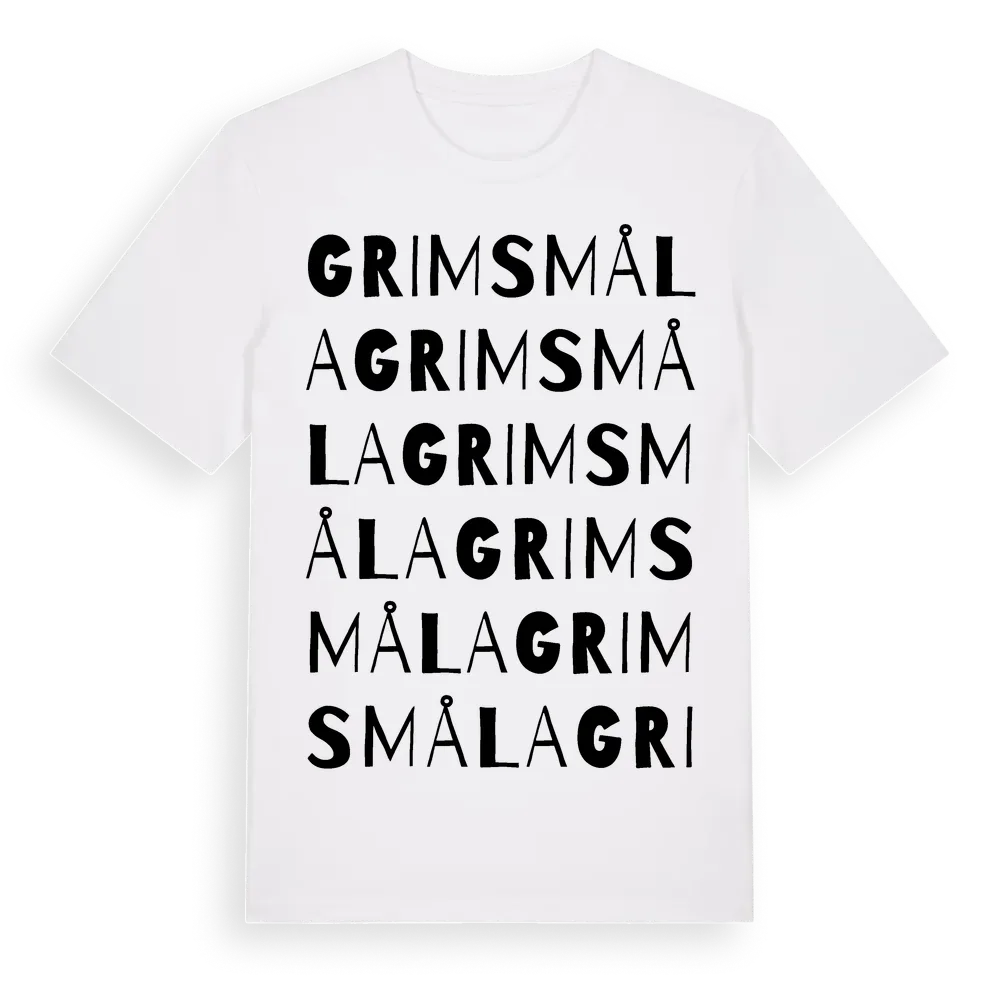 Grimsmåla ordlek t-shirt är inspirerad av Grimsmåla i Kalmar län, Sverige. Tröjan är designad för dig som har en speciell koppling till platsen – oavsett om du bor här, har rötterna här eller bara älskar Grimsmåla.