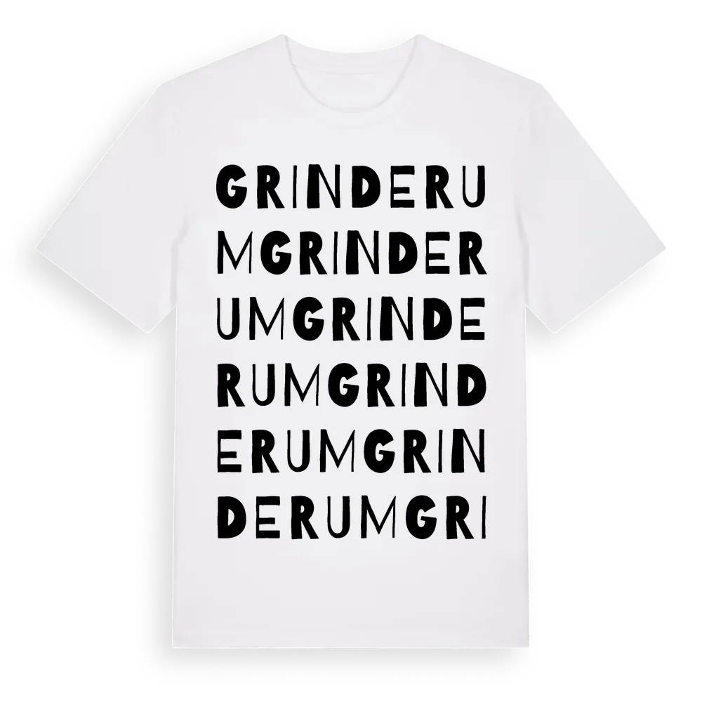 Grinderum ordlek t-shirt är inspirerad av Grinderum i Kalmar län, Sverige. Tröjan är designad för dig som har en speciell koppling till platsen – oavsett om du bor här, har rötterna här eller bara älskar Grinderum.