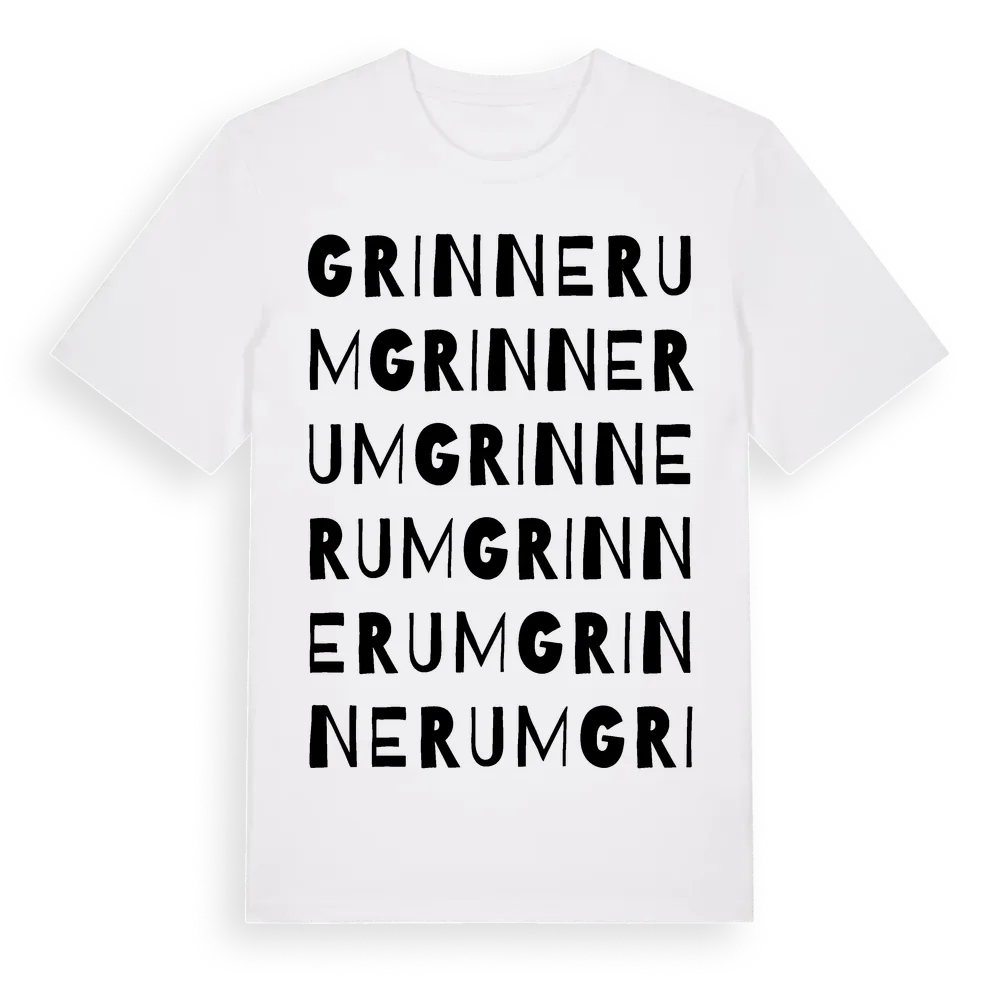 Grinnerum ordlek t-shirt är inspirerad av Grinnerum i Kalmar län, Sverige. Tröjan är designad för dig som har en speciell koppling till platsen – oavsett om du bor här, har rötterna här eller bara älskar Grinnerum.