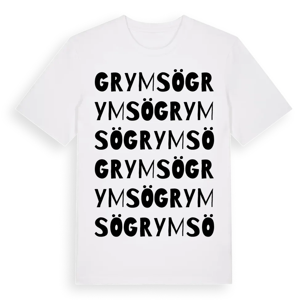 Grymsö ordlek t-shirt är inspirerad av Grymsö i Kalmar län, Sverige. Tröjan är designad för dig som har en speciell koppling till platsen – oavsett om du bor här, har rötterna här eller bara älskar Grymsö.