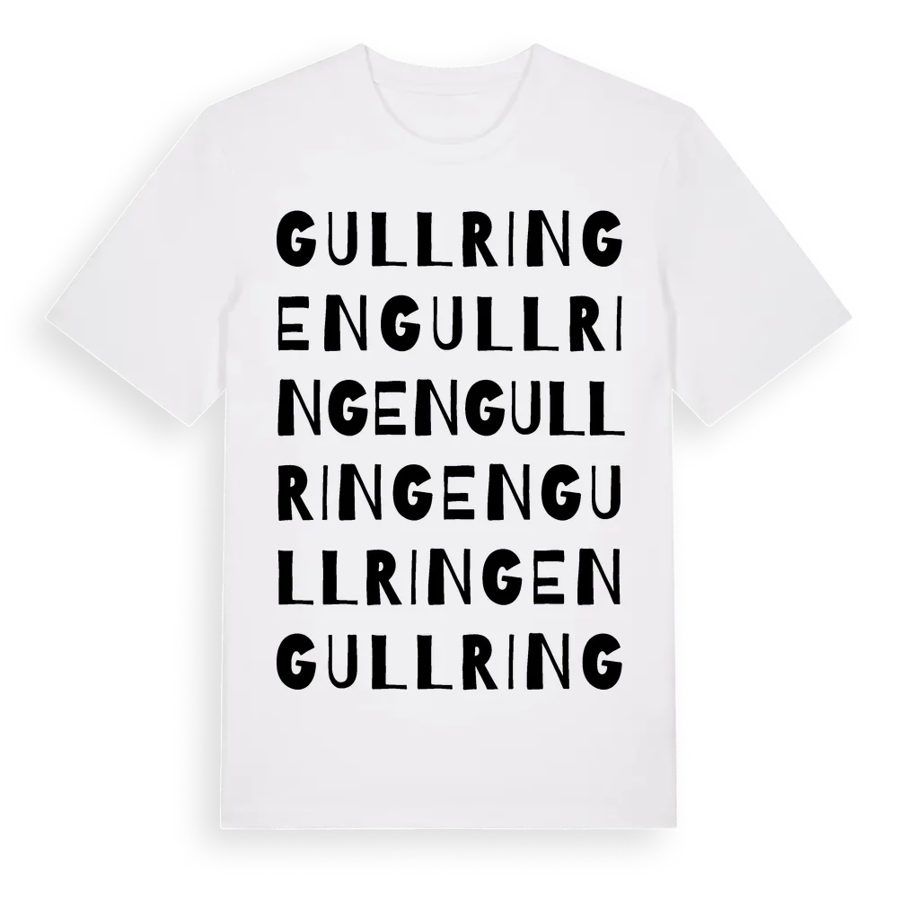 Gullringen ordlek t-shirt är inspirerad av byn Gullringen i Kalmar län, Sverige. Tröjan är designad för dig som har en speciell koppling till platsen – oavsett om du bor här, har rötterna här eller bara älskar Gullringen.