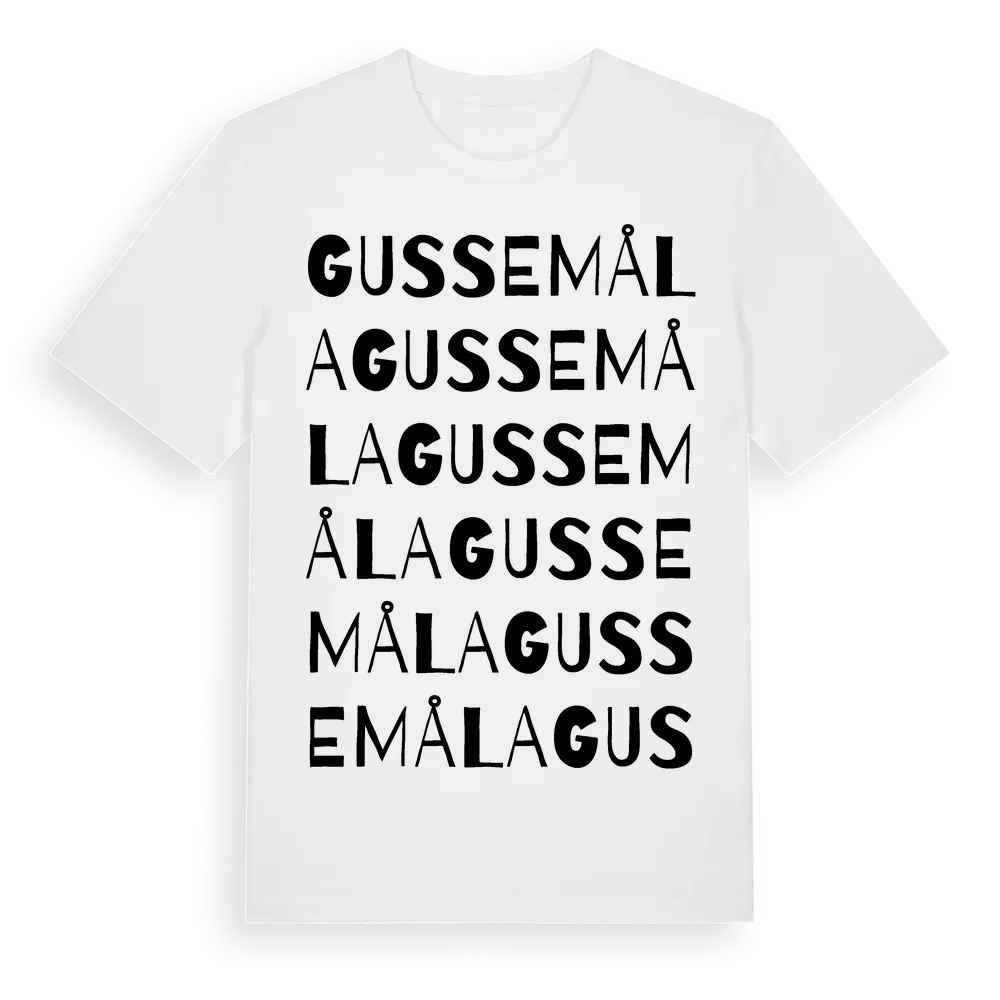 Gussemåla ordlek t-shirt är inspirerad av Gussemåla i Kalmar län, Sverige. Tröjan är designad för dig som har en speciell koppling till platsen – oavsett om du bor här, har rötterna här eller bara älskar Gussemåla.