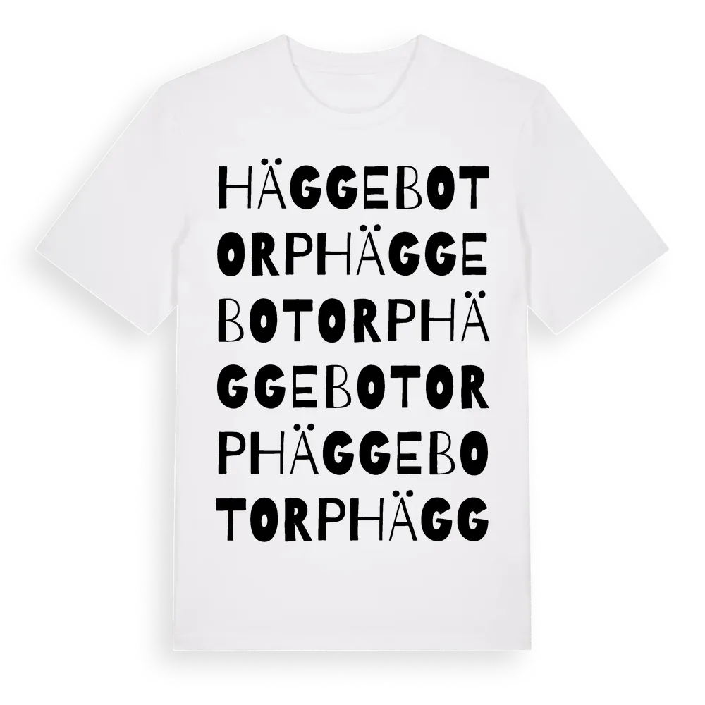 Häggebotorp ordlek t-shirt är inspirerad av Häggebotorp i Kalmar län, Sverige. Tröjan är designad för dig som har en speciell koppling till platsen – oavsett om du bor här, har rötterna här eller bara älskar Häggebotorp.