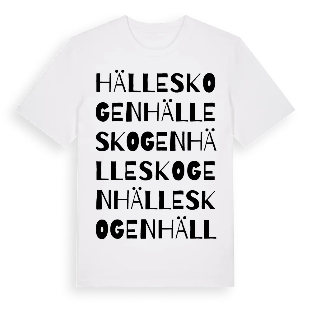 Hälleskogen ordlek t-shirt är inspirerad av Hälleskogen i Kalmar län, Sverige. Tröjan är designad för dig som har en speciell koppling till platsen – oavsett om du bor här, har rötterna här eller bara älskar Hälleskogen.