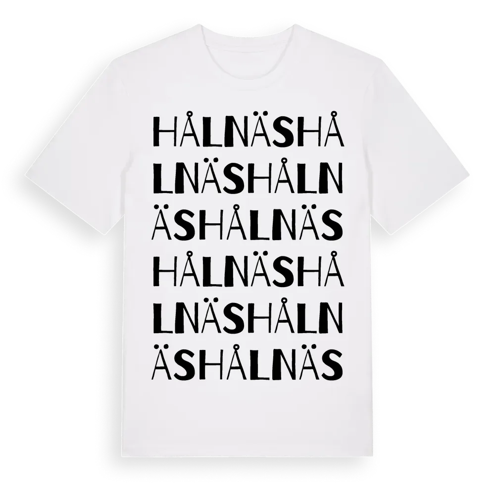 Hålnäs ordlek t-shirt är inspirerad av Hålnäs i Kalmar län, Sverige. Tröjan är designad för dig som har en speciell koppling till platsen – oavsett om du bor här, har rötterna här eller bara älskar Hålnäs.