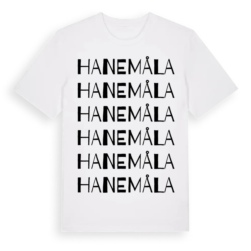 Hanemåla ordlek t-shirt är inspirerad av stadsdelen Hanemåla i Kalmar län, Sverige. Tröjan är designad för dig som har en speciell koppling till platsen – oavsett om du bor här, har rötterna här eller bara älskar Hanemåla.