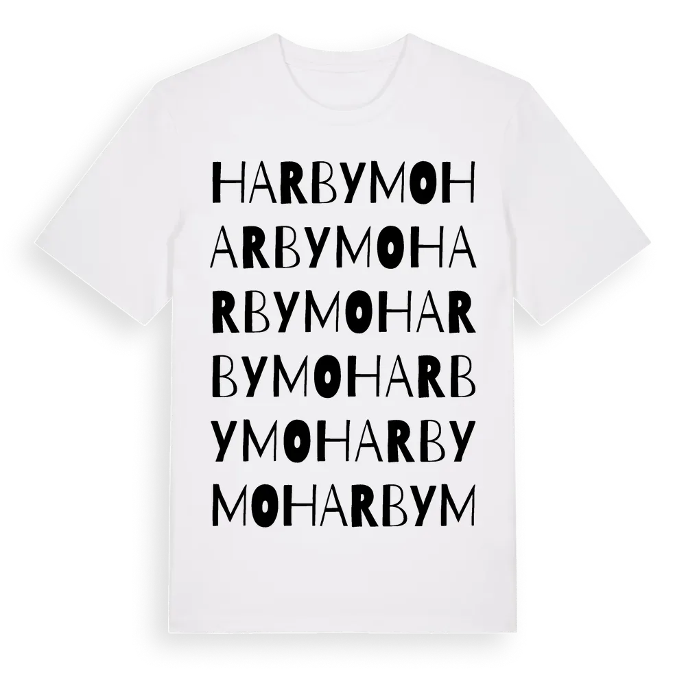 Harbymo ordlek t-shirt är inspirerad av byn Harbymo i Kalmar län, Sverige. Tröjan är designad för dig som har en speciell koppling till platsen – oavsett om du bor här, har rötterna här eller bara älskar Harbymo.