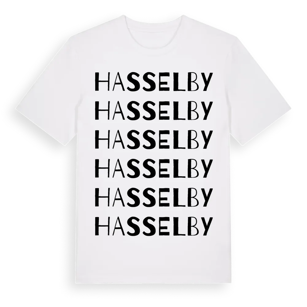 Hasselby ordlek t-shirt är inspirerad av Hasselby i Kalmar län, Sverige. Tröjan är designad för dig som har en speciell koppling till platsen – oavsett om du bor här, har rötterna här eller bara älskar Hasselby.