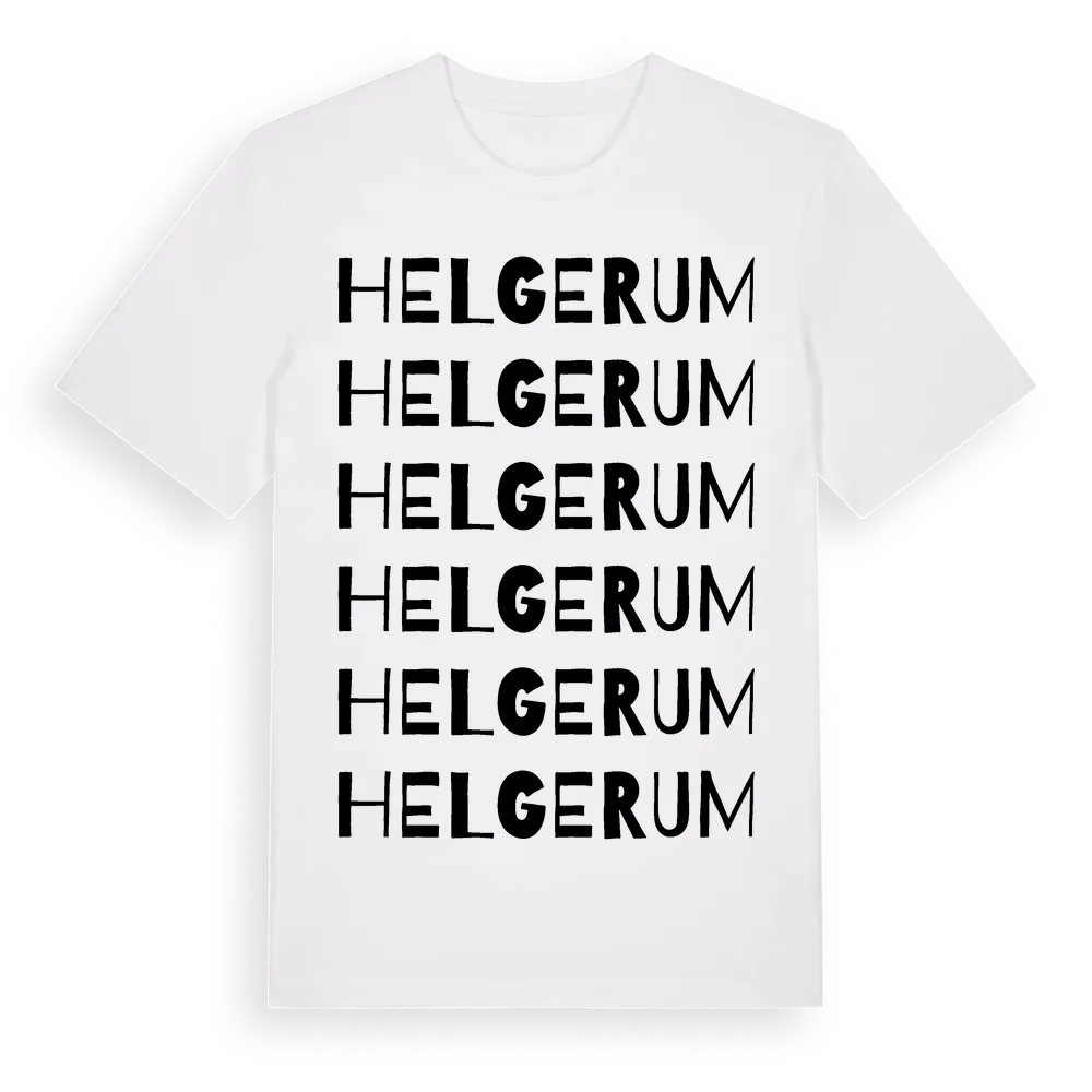 Helgerum ordlek t-shirt är inspirerad av Helgerum i Kalmar län, Sverige. Tröjan är designad för dig som har en speciell koppling till platsen – oavsett om du bor här, har rötterna här eller bara älskar Helgerum.