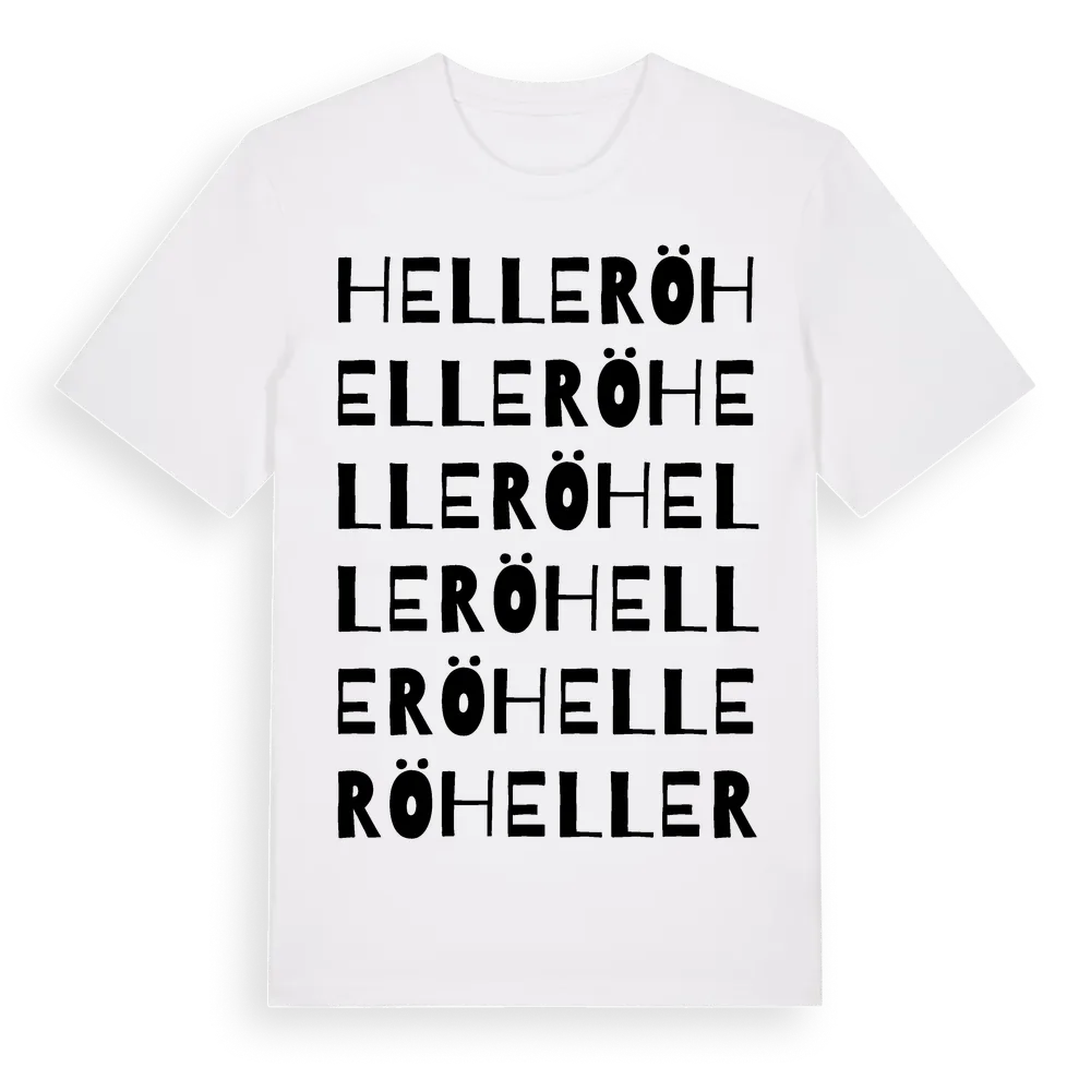 Hellerö ordlek t-shirt är inspirerad av byn Hellerö i Kalmar län, Sverige. Tröjan är designad för dig som har en speciell koppling till platsen – oavsett om du bor här, har rötterna här eller bara älskar Hellerö.