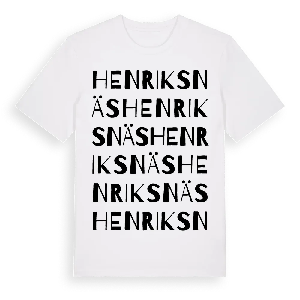 Henriksnäs ordlek t-shirt är inspirerad av Henriksnäs i Kalmar län, Sverige. Tröjan är designad för dig som har en speciell koppling till platsen – oavsett om du bor här, har rötterna här eller bara älskar Henriksnäs.