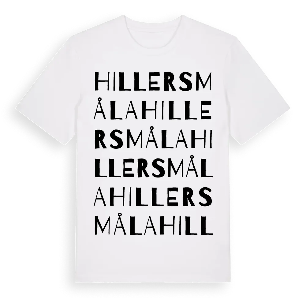 Hillersmåla ordlek t-shirt är inspirerad av Hillersmåla i Kalmar län, Sverige. Tröjan är designad för dig som har en speciell koppling till platsen – oavsett om du bor här, har rötterna här eller bara älskar Hillersmåla.