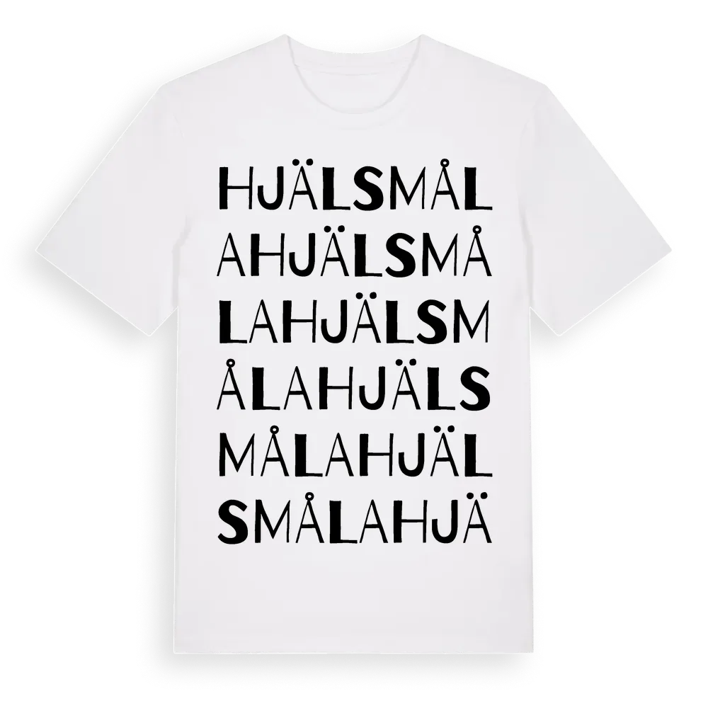 Hjälsmåla ordlek t-shirt är inspirerad av byn Hjälsmåla i Kalmar län, Sverige. Tröjan är designad för dig som har en speciell koppling till platsen – oavsett om du bor här, har rötterna här eller bara älskar Hjälsmåla.