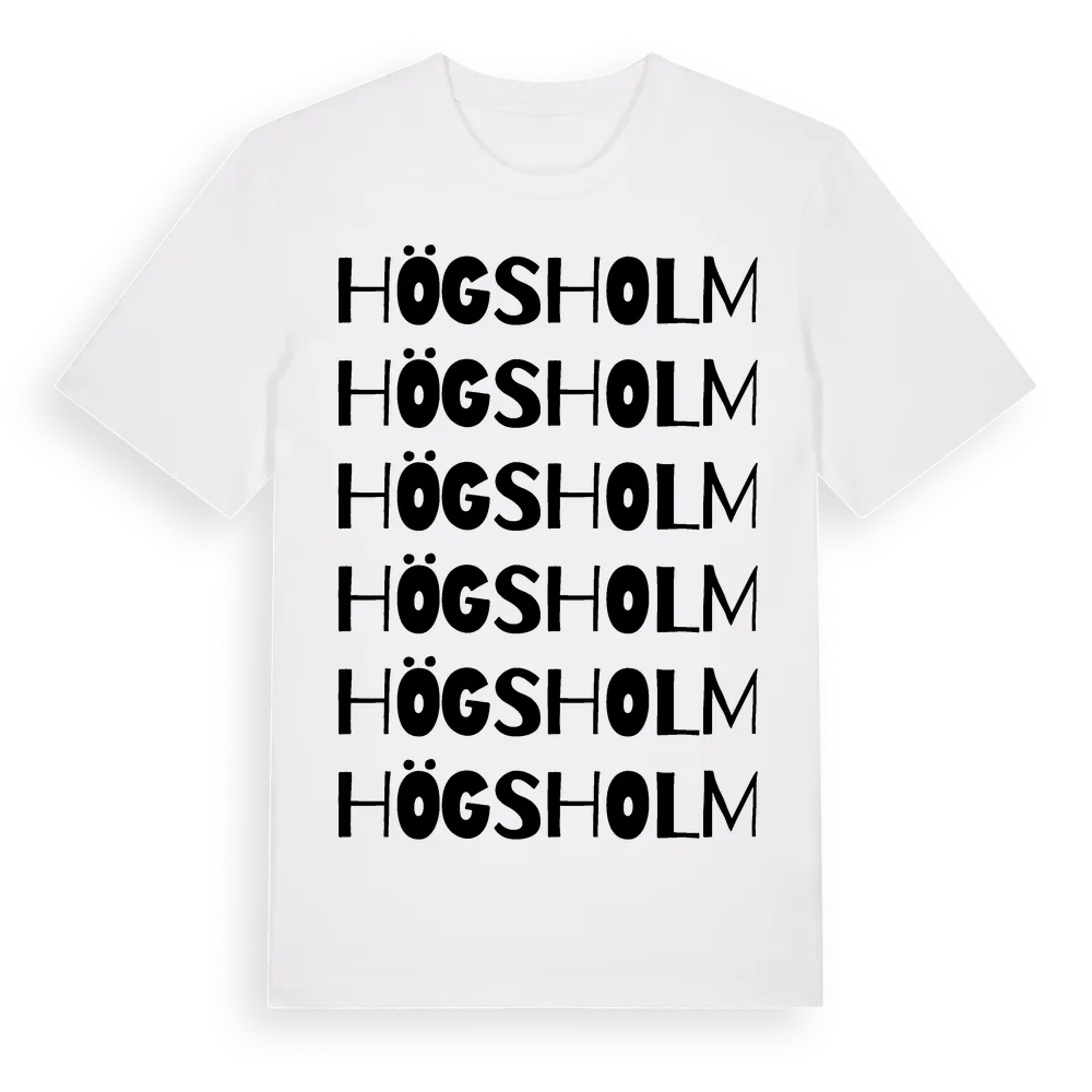 Högsholm ordlek t-shirt är inspirerad av Högsholm i Kalmar län, Sverige. Tröjan är designad för dig som har en speciell koppling till platsen – oavsett om du bor här, har rötterna här eller bara älskar Högsholm.