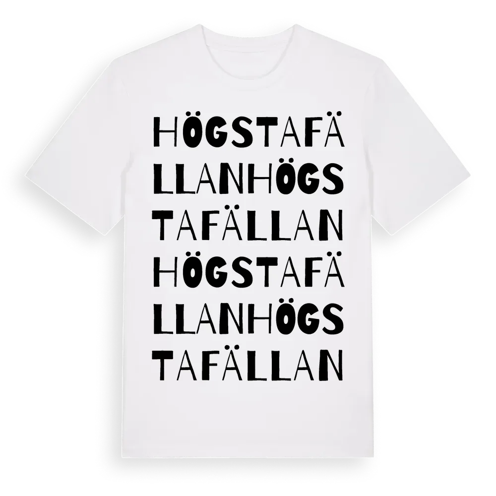 Högstafällan ordlek t-shirt är inspirerad av Högstafällan i Kalmar län, Sverige. Tröjan är designad för dig som har en speciell koppling till platsen – oavsett om du bor här, har rötterna här eller bara älskar Högstafällan.