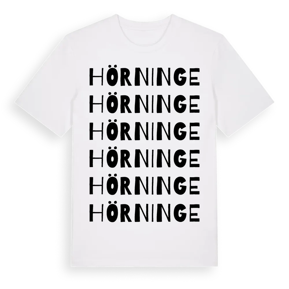 En ordlek byggd på Hörninges namn. Subtilt och klurig – ett motiv som bara de som verkligen känner platsen fullt ut förstår. Premium bomull, unisex – från byn Hörninge i Kalmar län.