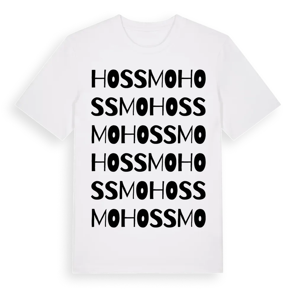 Hossmo ordlek t-shirt är inspirerad av byn Hossmo i Kalmar län, Sverige. Tröjan är designad för dig som har en speciell koppling till platsen – oavsett om du bor här, har rötterna här eller bara älskar Hossmo.
