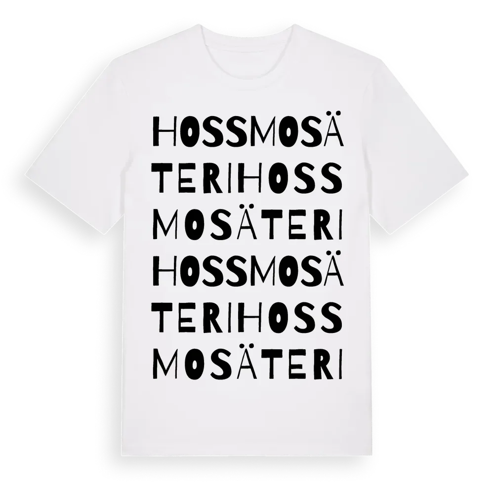 Hossmo Säteri ordlek t-shirt är inspirerad av Hossmo Säteri i Kalmar län, Sverige. Tröjan är designad för dig som har en speciell koppling till platsen – oavsett om du bor här, har rötterna här eller bara älskar Hossmo Säteri.