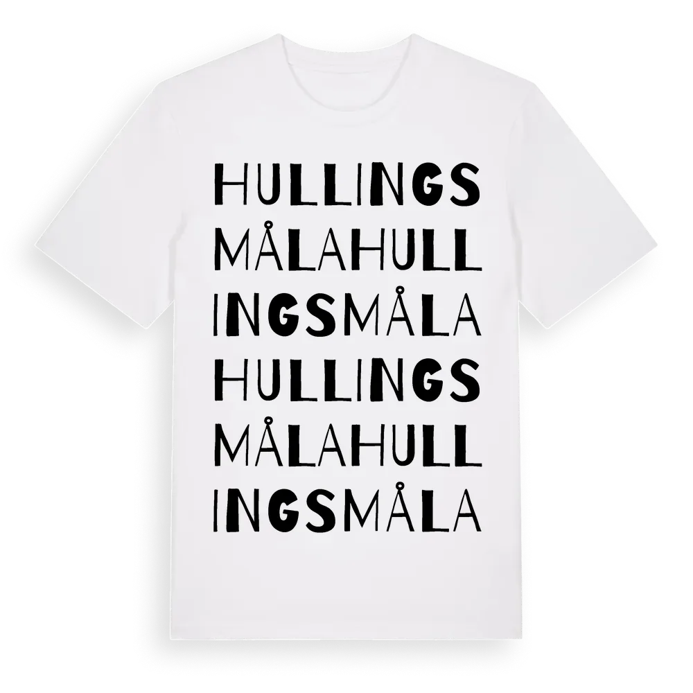 Hullingsmåla ordlek t-shirt är inspirerad av byn Hullingsmåla i Kalmar län, Sverige. Tröjan är designad för dig som har en speciell koppling till platsen – oavsett om du bor här, har rötterna här eller bara älskar Hullingsmåla.