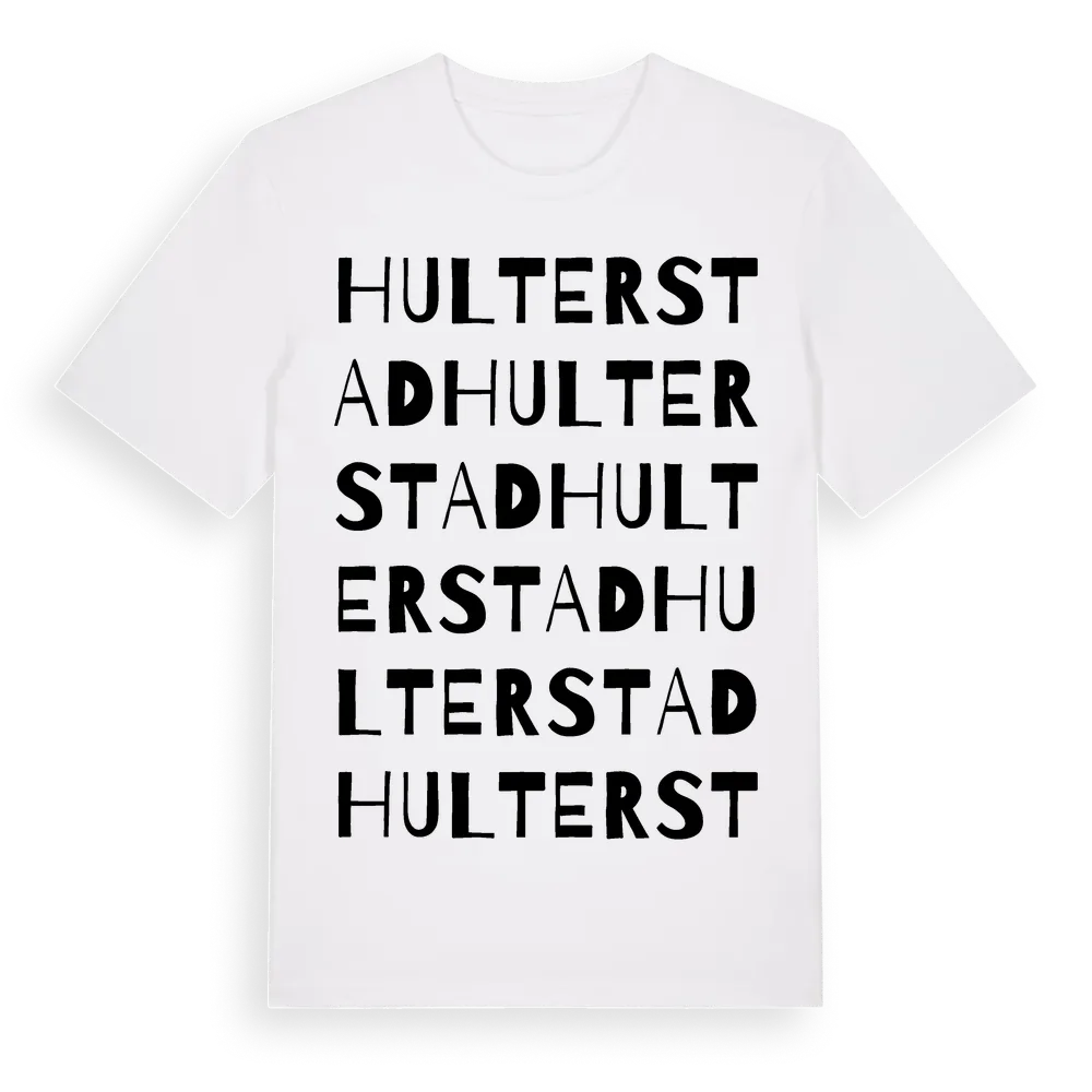 Hulterstad ordlek t-shirt är inspirerad av byn Hulterstad i Kalmar län, Sverige. Tröjan är designad för dig som har en speciell koppling till platsen – oavsett om du bor här, har rötterna här eller bara älskar Hulterstad.