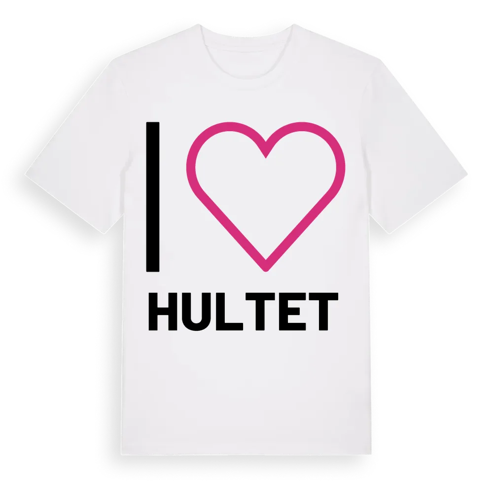 Det klassiska "I ❤ Hultet"-motivet i stort format som täcker hela bröstet. För dig som vill visa kärleken till Hultet på riktigt. Premium bomull, unisex – från Hultet i Kalmar län.